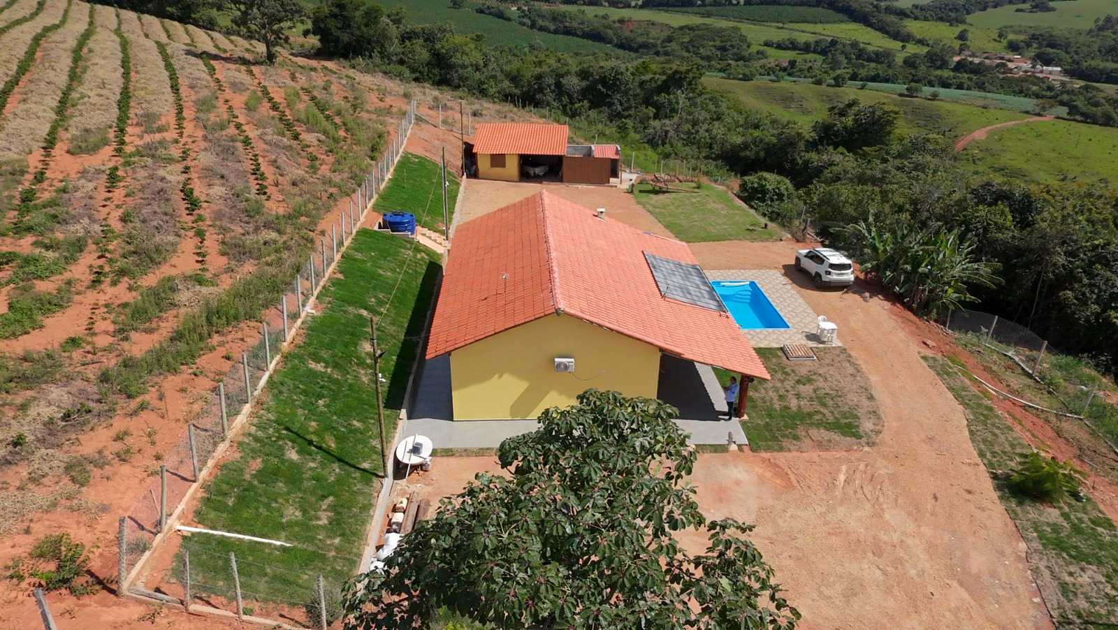 Na área externa, o sítio oferece um galpão, ideal para apoio rural, armazenamento ou outras finalidades. Possui água de poço artesiano, garantindo autonomia e abundância. Para momentos de lazer, destaque para a piscina de 20.000 litros com aquecedor, perfeita para aproveitar em qualquer época do ano.