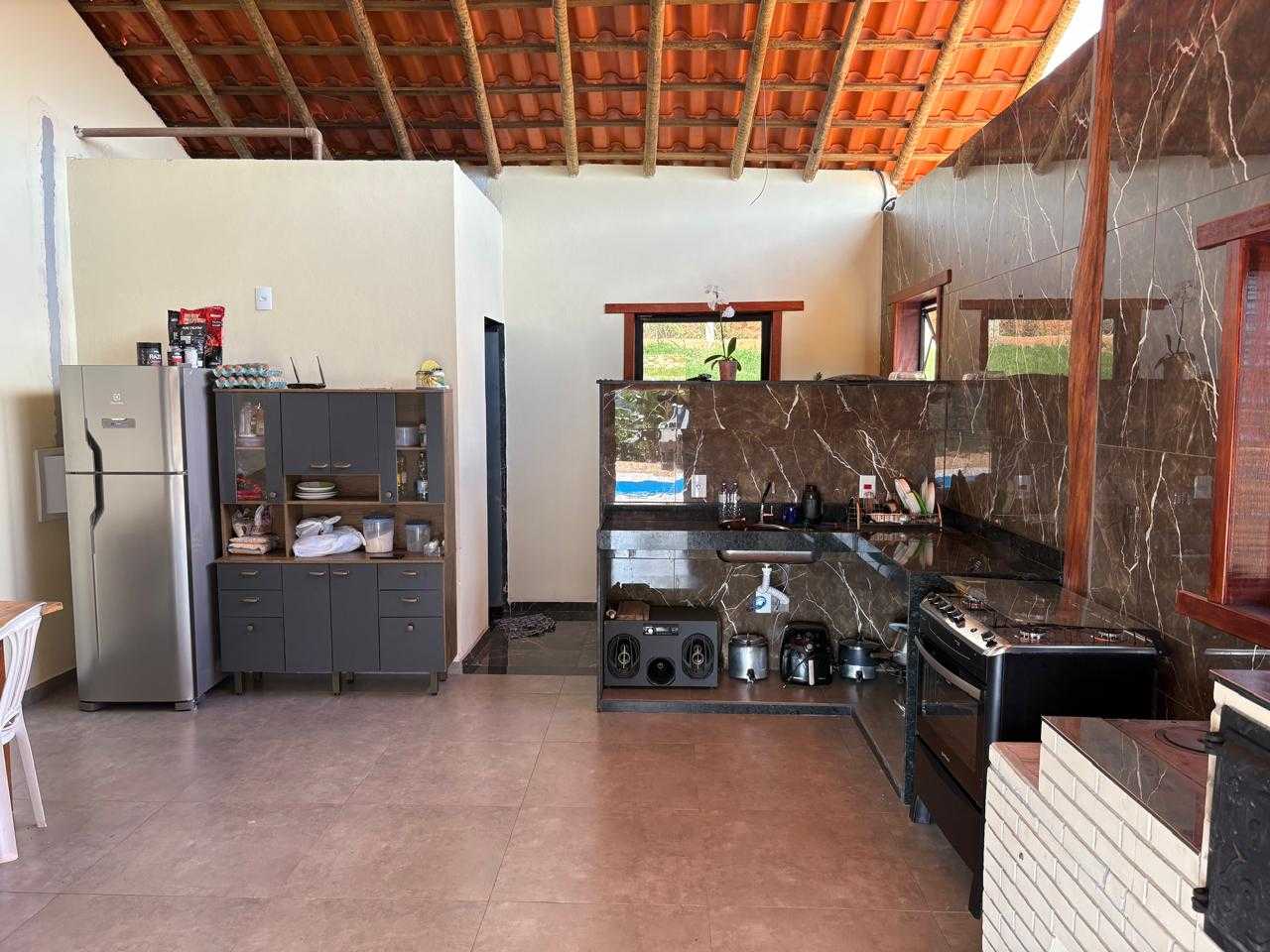 A propriedade conta com uma casa muito bem estruturada, composta por cozinha planejada, sala aconchegante, dois quartos, sendo um deles suíte com closet, além de banheiro social. Dispõe ainda de garagem coberta para até 3 carros, oferecendo praticidade e segurança.